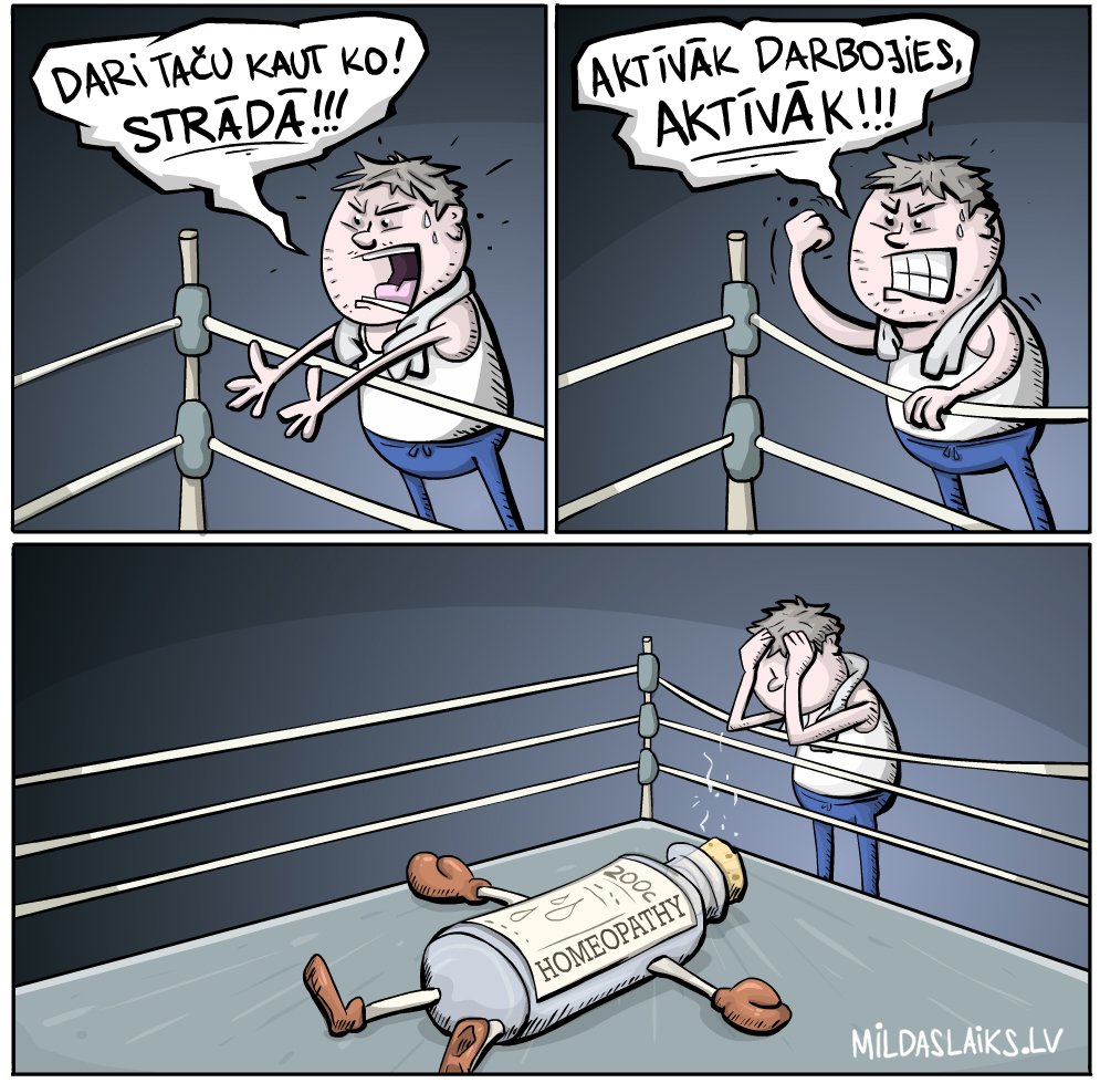 – Saprotiet, pats princips nav nekas jauns. To jau pirms vairāk nekā 200 gadiem ieviesa Dr.Zāmuels Hānemanis, vācietis. Ja nu ir kāda tauta, kurai es uzticos nekritiski, tie ir vācieši, hehehe… Piedodiet. Tas nebija… Piedodiet, šis nav brīdis, kad jokot. Vārdu sakot, princips ir visai vienkāršs. Zāmuels un neskaitāmi veseli un dzīvespriecīgi pacienti pierādījuši – vielas ārstnieciskās īpašības netiek zaudētas, pat visai niecīgu daudzumu izšķīdinot ūdenī vai spirtā. Tieši otrādi – tās pat mēdz pastiprināties. Proti, jo vairāk mēs vielu atšķaidām, jo spēcīgāka tā kļūst.