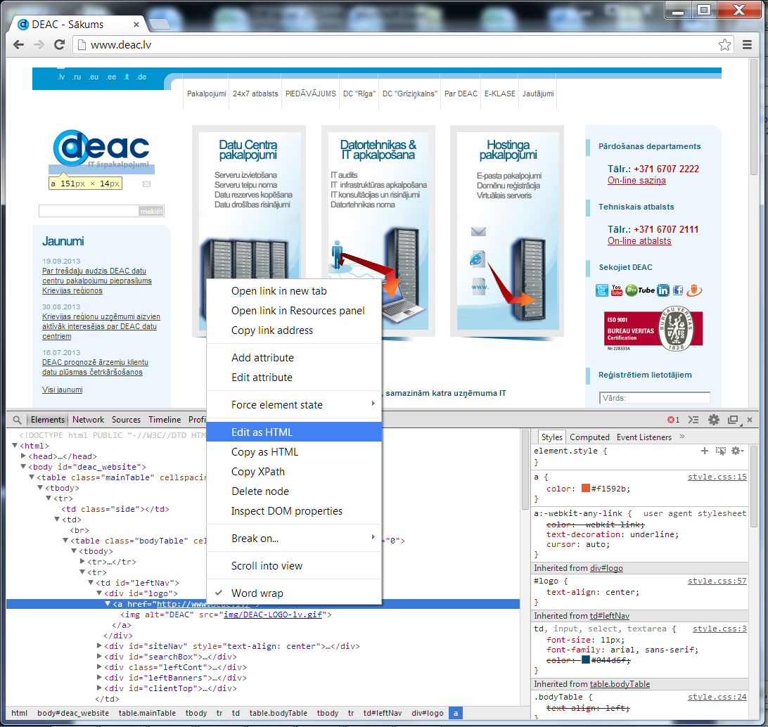 3) Varam tagad izdzēst, vai manīt izvēlēto elementu, es izvēlējos to mainīt (“Edit as HTML”)